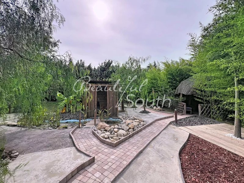 Le jardin, soigné, abrite une piscine luxueuse et atypique, un terrain de pétanque et des coins poétiques invitant à la détente ou à la lecture. Idéals pour profiter des belles journées ensoleillées.
