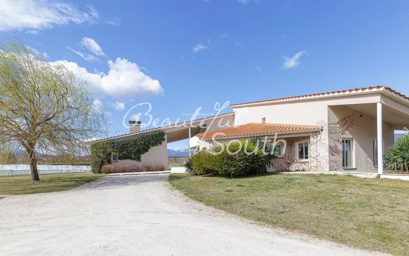 Offrant des vues panoramiques sur le mont Canigou et toute la chaine des Pyrénées, exposée sud, implantée sur un terrain de 2.08 hectares avec piscine, villa d’architecte à l’architecture contemporaine aux prestations haut de gamme.