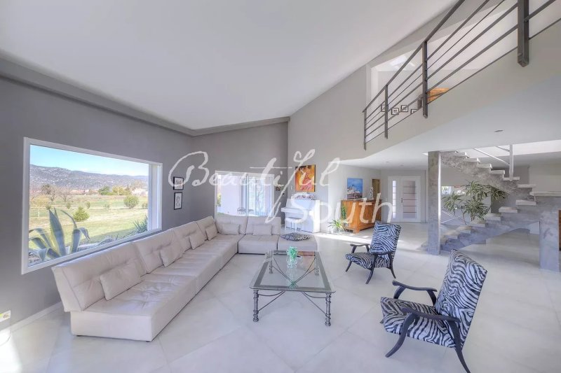 La maison totalise 278m² habitable et se compose en rez-de-chaussée d’une très belle et lumineuse pièce de vie de plus de 100m² pourvue de larges baies vitrées offrant des vues dégagées sur les extérieurs et les montagnes environnantes, accédant à diverses terrasses et au parc, une grande cuisine ouverte équipée avec plans de travail en granit, accès aux extérieurs, à la cuisine d’été et la piscine, une buanderie, un cellier, une spacieuse suite parentale (45m²) avec dressing et salle de bains.