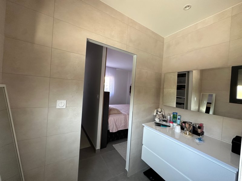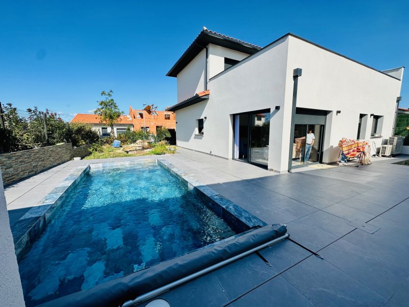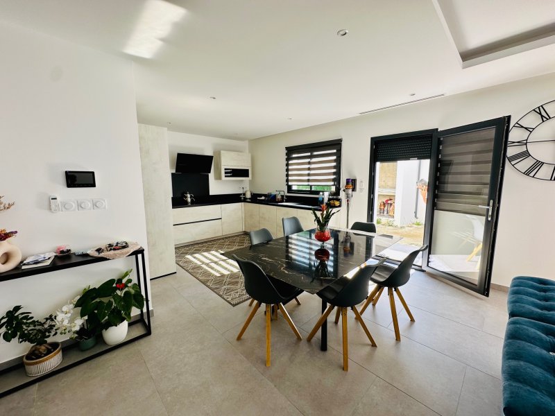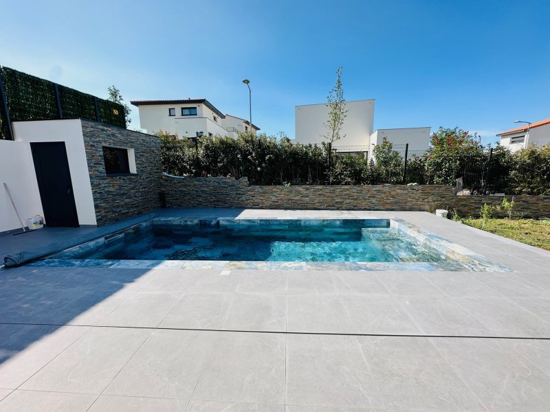 Perpignan, coup de coeur, villa très récente 2022 en 3 faces sur terrain de 400m2 avec piscine maçonnée pierre de Bali, 4 pièces de 120m2 de surfaces habitables, offre une belle entrée avec porte e bois, placards à l'entrée, une jolie suite parentale au RDC (Dressing et Salle d'eau à l'italienne), un wc séparé, un salon séjour lumineux avec plafond déco avec spots et cusiine équipée avec un cellier, et de grandes baies vitrées donnant sur une grande terrasse carrelée et une belle piscine maçonnée de 7x3m en pierres de Bali, une cuisine d'été. A l'étage, un palier desservant 2 chambres avec dressing et placard donnant sur une grande terrasse commune, une salle d'eau avec douche à l'italienne et wc indépendant. Dans un nouveau lotissement résidentiel et au calme, proche des commodités et des commerces et de l'Université et de la Porte d'Espagne. Prestations de Standing, Spots, Climatisation gainée, volets roulants, Ballon thermodynamique. Un garage carrelé complète le bien. Pour plus d'informations ou visite, contactez-nous au 0683746071, Mme LE GUEVEL, EI, RSAC No814377776, Agence LAVILLE IMMO. Ville du greffe : PERPIGNAN. Les informations sur les risques auxquels ce bien est exposé sont disponibles sur le site Géorisques : https://www.georisques.gouv.fr. Honoraires d'agence à la charge du vendeur.