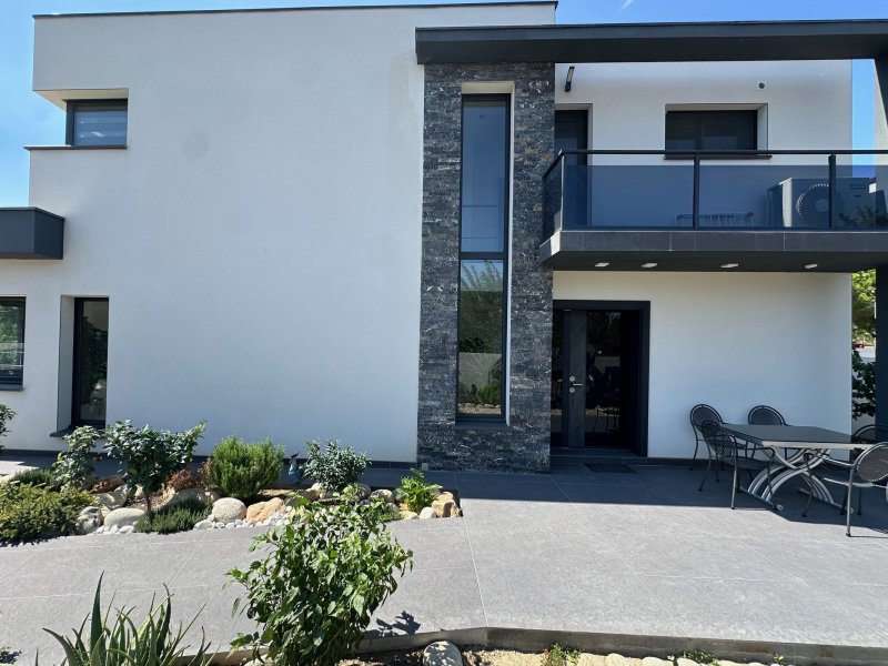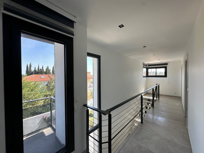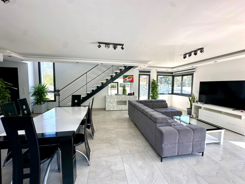 A Perpignan, au Calme, sans vis-à-vis, sur une parcelle où sont construites 4 villa de standing et contemporaine RT2012, type T5 (4 chambres) à usage d'habitation élevée d'un étage sur rez-de-chaussée édifiée en 4 faces, d'une surface habitable de 140m2 environ sur un terrain de 370m2 environ avec Mur mitoyen en parpaings de 1,80m pour une intimité, grand portail, terrain piscinable, parfaite pour une famille, est située hors lotissement, proche commodités et à 5 minutes du centre-ville. La Villa de standing offre au RDC une grande entrée avec une belle grande porte d'entrée, un grand espace de vie de près de 55m2 : Salon Séjour et une Cuisine équipée et cellier donnant sur une terrasse et jardin arboré et piscinable, une suite parentale de 18m2 au RDC avec salle d'eau et dressing, un wc séparé et un cellier. A l'étage, un dégagement de 11m2, 2 chambres de 13,50m2, 1 grande suite parentale de 18m2 et 1 grande salle de bain de 7m2 et un wc séparé. Prestations de standing, carrelage 80x80, climatisation réversible, spots, menuiserie alu sécurisé SP10. Garanties décennales. Perpignan Ouest, à moins de 3 minutes de la rocade A9, proche commerces, écoles, restaurant, salle de sport (dans un rayon de'1 kilomètre), proche Saint Charles et CCI. Pour plus d'informations ou visite, contactez-nous au 0683746071, Mme LE GUEVEL, EI, RSAC No814377776, Agence LAVILLE IMMO. Ville du greffe : PERPIGNAN. Les informations sur les risques auxquels ce bien est exposé sont disponibles sur le site Géorisques : https://www.georisques.gouv.fr. Honoraires d'agence à la charge du vendeur.