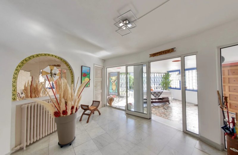 Répartie sur trois niveaux, elle séduit dès le patio et l’entrée. L’escalier central relie les chambres, les pièces d’eau et la magnifique pièce de vie avec cheminée en marbre vert. Deux cours et une terrasse prolongent le salon, tandis qu’une buanderie et un garage ajoutent confort et praticité.