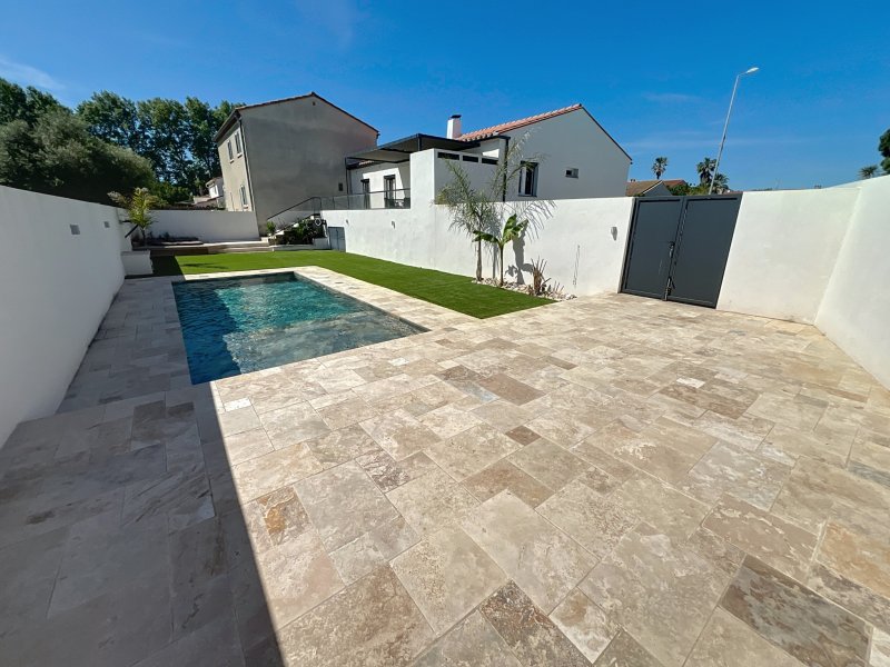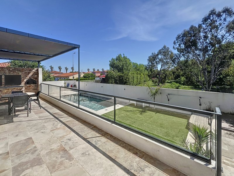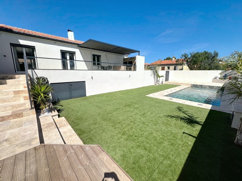 AU CALME DANS UN SECTEUR RESIDENTIEL - PRESTATIONS DE QUALITE - MAGNIFIQUE VILLA 3 FACES DE PLAIN PIED 112 M2 HBTS SUR 725 M2 DE TERRAIN SANS VIS A VIS - PISCINE MACONNEE AV PLAGE 10X4 -CUISINE D ETE BARBECUE FOUR A PIZZA - GRANDE ALLEE PLUSIEURS STATIONNEMENTS VEHICULES ET CAMPING CAR - FORAGE - 2 PORTAILS -SOUS SOL AMENAGEABLE ENV 116 M2 NOMBREUSES POSSIBILITES - ELLE SE DECOMPOSE COMME SUIT : ENTREE 5.70 M2 -SEJOUR SALON AV CUISINE OUVERTE ENV 50 M2 DONNANT SUR GRANDE TERRASSE CARRELEE EN TRAVERTIN - CUISINE D ETE FOUR A PIZZA BARBECUE - JARDIN ET PISCINE PLEIN SUD SANS VIS A VIS - UNE CHAMBRE 12.04 M2 AV DRESSING 4.28 M2 - BUANDERIE 5.41 M2- 2 CHAMBRES 11.90 ET 11.75 M2 -PLACARD - SALLE DE BAINS AV DOUCHE ET BAIGNOIRE 5.23 M2 ET TOILETTE INDEPENDANT - MENUISERIES PVC -VOLET ROULANT MOTORISE ET CENTRALISE - CLIMATISATION GAINABLE -FORAGE -STATIONNEMENT CAMPING CAR -CLIMATISATION GAIGNABLE- PROCHE TOUTES COMMODITES LES INFORMATIONS SUR LES RISQUES AUXQUELS CE BIEN EST EXPOSE SONT DISPONIBLES SUR LE SITE GEORISQUES : WWW.GEORISQUES.FR