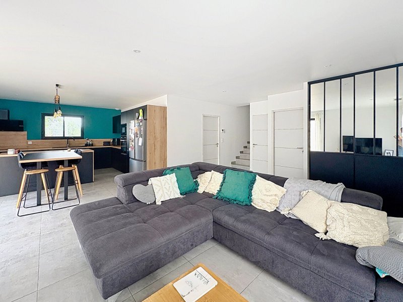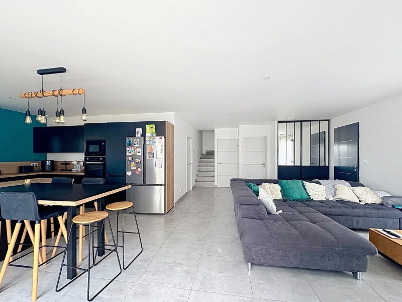 Au rez-de-chaussée on retrouve une belle pièce à vivre de 48 m² agencé d'un salon et d'une cuisine IXINA équipée et aménagée avec bel îlot central permettant l'accès à l'extérieur.
