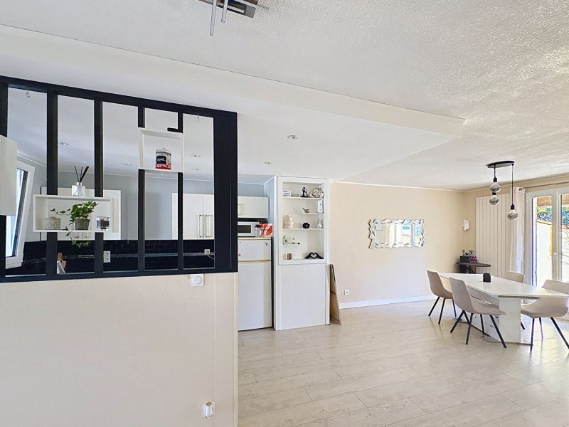 Elle propose une spacieuse pièce de vie d'environ 50 m², lumineuse, avec cuisine ouverte aménagée et équipée.