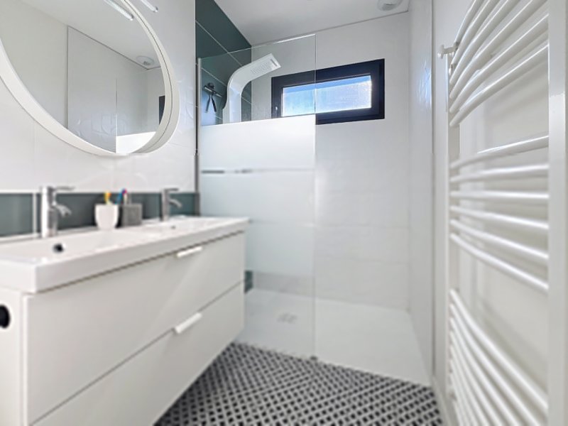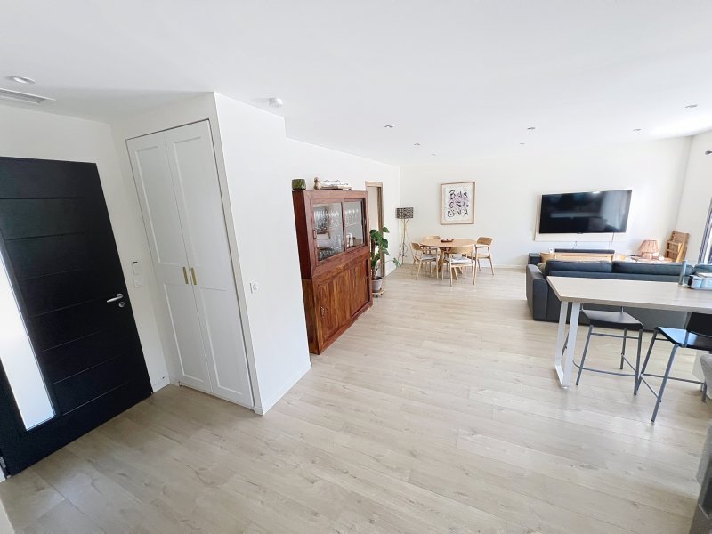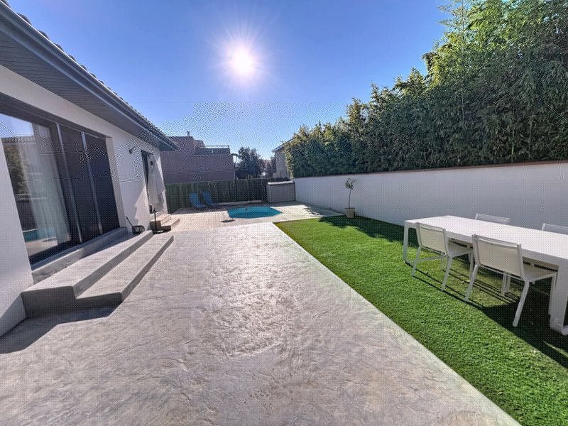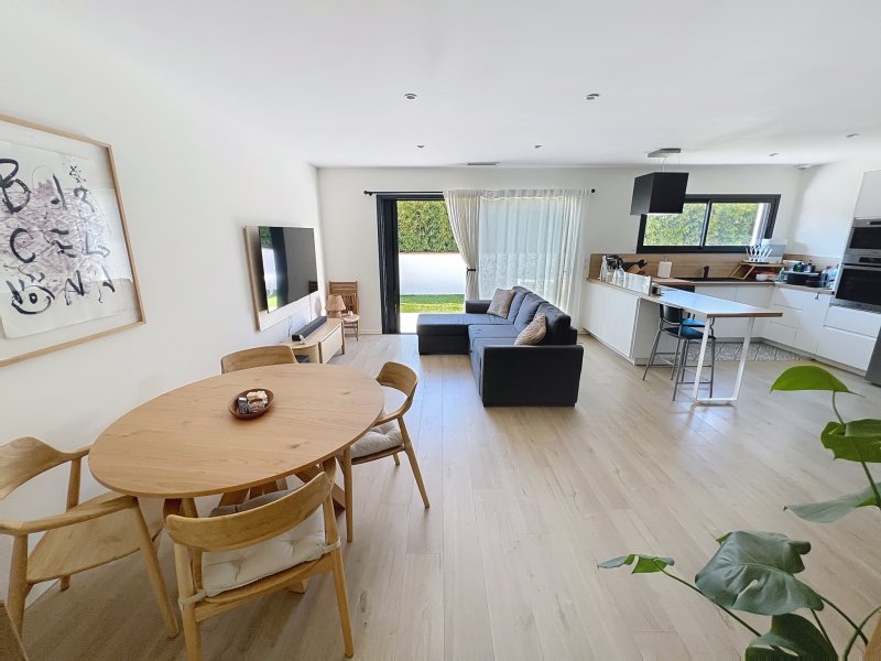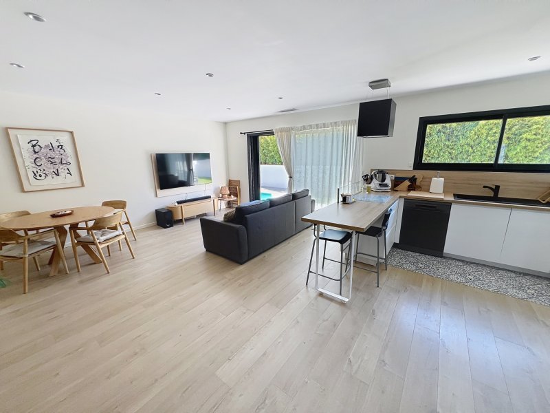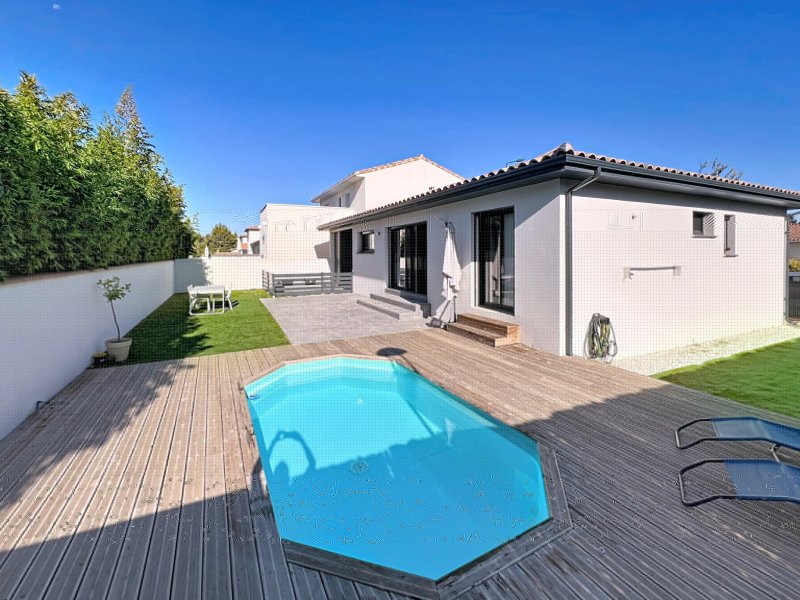 SECTEUR RESIDENTIEL VILLA 3 FACES DE PLAIN PIED ENV 90 M2 SUR 400 M2 DE TERRAIN - PISCINE EN BOIS ENTERREE - CONSTRUCTION DE 2021 SOUS GARANTIE DECENNALE (GROS OEUVRE ET CHARPENTE ) - GARAGE TRAVERSANT CARRELE ET ISOLE - STATIONNEMENT VEHICULE DEVANT GARAGE-PLACARDS RANGEMENT EXTERIEUR ELLE SE DECOMPOSE COMME SUIT : ENTREE -SEJOUR SALON AV CUISINE OUVERTE 42 M2 DONNANT SUR JARDIN ET PISCINE EN BOIS ENTERREE PLEIN -TERRASSE EN BETON MARQUE - 1 SUITE PARENTALE AV DRESSING ET SALLE DEAU DONNANT SUR JARDIN VUE PISCINE - 2 CHAMBRES -SALLE DE BAINS -TOILETTE INDEPENDANT GARAGE TRAVERSANT CARRELE ET ISOLE CLIMATISATION GAINABLE -BALLON THERMODYNAMIQUE - MENUISERIES ALU ET VOLET ROULANT MOTORISE -MOUSTIQUAIRES PROCHE TOUTES COMMODITES LES INFORMATIONS SUR LES RISQUES AUXQUELS CE BIEN EST EXPOSE SONT DISPONIBLES SUR LE SITE GEORISQUES : WWW.GEORISQUES.FR