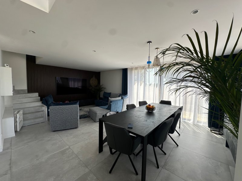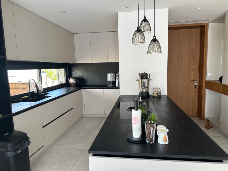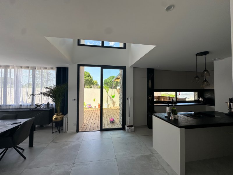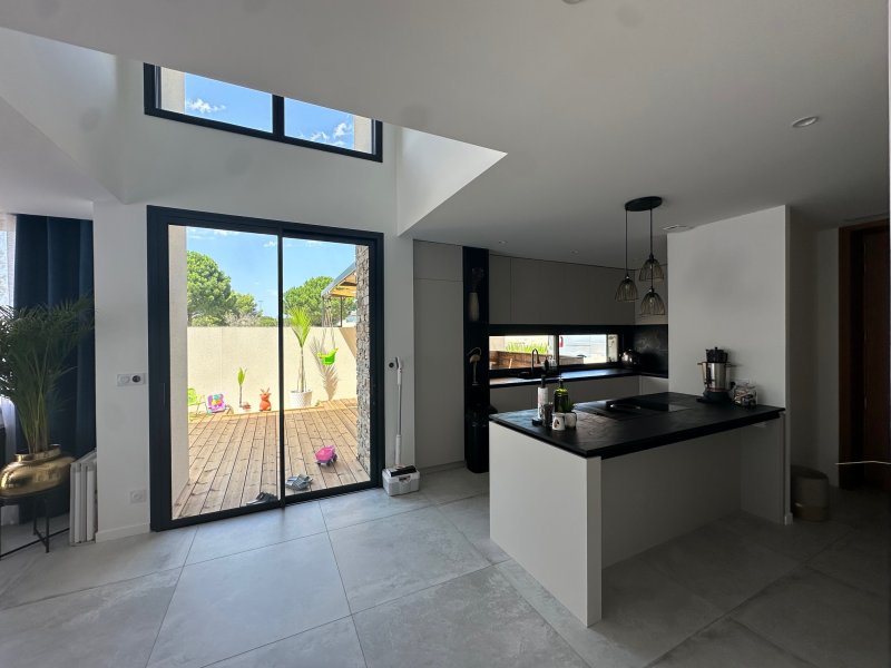 A Cabestany, dans secteur résidentiel, coup de coeur assuré pour cette villa de haut standing en 3 faces, très récente, 2022, 4/5 pièces, très lumineuse, avec facade en pierres de parement, sur une parcelle piscinable sans vis à vis, de 140m2 de surfaces habitables, dans un quartier calme et sans vis a vis, exposée plein sud sur les Albères, offre au RDC, une belle porte en bois toute hauteur donnant sur une grande entrée avec placards aménagés, une cuisine de haut standing équipée avec plaque nikolas Tesla, un grand séjour salon de 65m2 avec vide sur séjour, avec de grandes baies vitrées toutes hauteur, donnant sur une grande terrasse en bois, un wc séparé, un garage carrelé, à l'étage, parquet au sol, un beau palier lumineux desservant 3 chambres dont 2 suites parentales avec grand dressing et placards et salles d'eau, une 3ème salle de bain. Prestations de Standing, carrelage sol 90X90, grandes Baies de 4m à Galandage, spots, adoucisseur d'eau. Garanties Décennales. DPE A, GES A. A moins de 5 minutes du Mas Guerido et Medipole et 5 minutes de Perpignan et à 12 minutes des plages. A visiter rapidement, week-end inclus. Pour plus d'informations ou visite, contactez-nous au 0683746071, Mme LE GUEVEL, EI, RSAC No814377776, Agence LAVILLE IMMO. Ville du greffe : PERPIGNAN. Les informations sur les risques auxquels ce bien est exposé sont disponibles sur le site Géorisques : https://www.georisques.gouv.fr. Honoraires d'agence à la charge du vendeur.