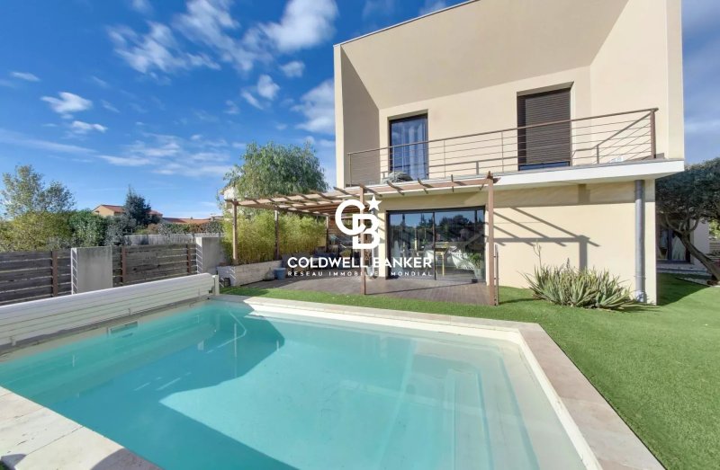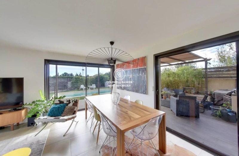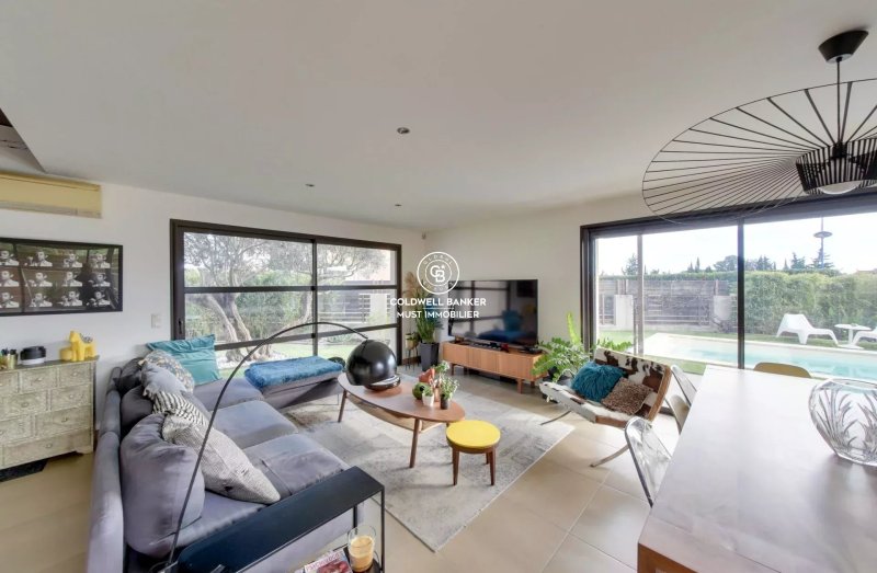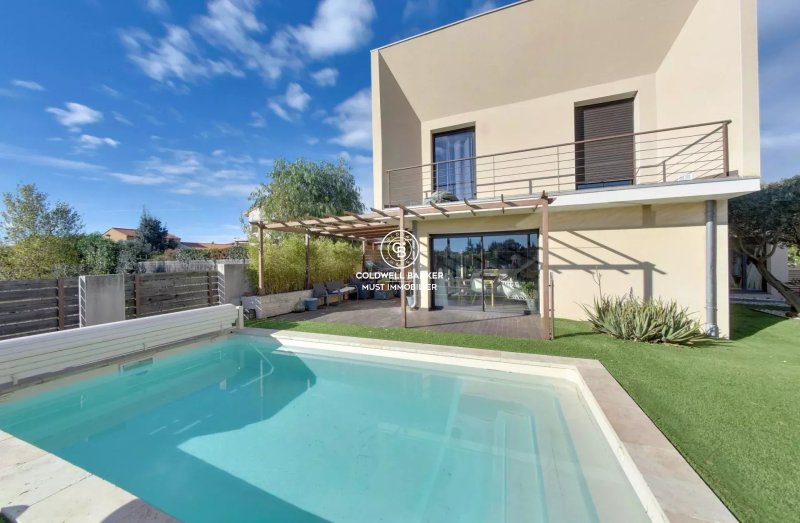 Cabestany, environnement des plus résidentiel pour cette villa d'architecte développant 188 m2 de surface habitable sur une parcelle de 400 m2. En rez de chaussée se trouve une pièce de vie de 65 m2 avec cuisine équipée prolongée par une vaste piscine ainsi qu'une suite parentale de 36 m2. A l'étage une mezzanine pouvant faire office de bureau distribue 3 chambres de + de 15 m2 avec une salle de bains.
