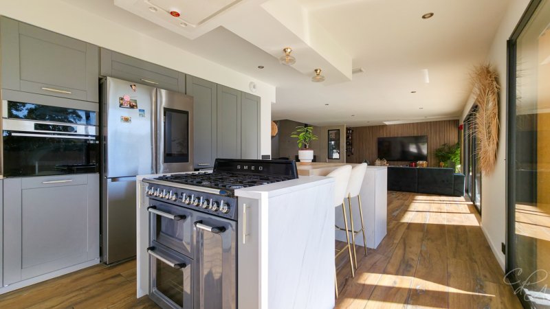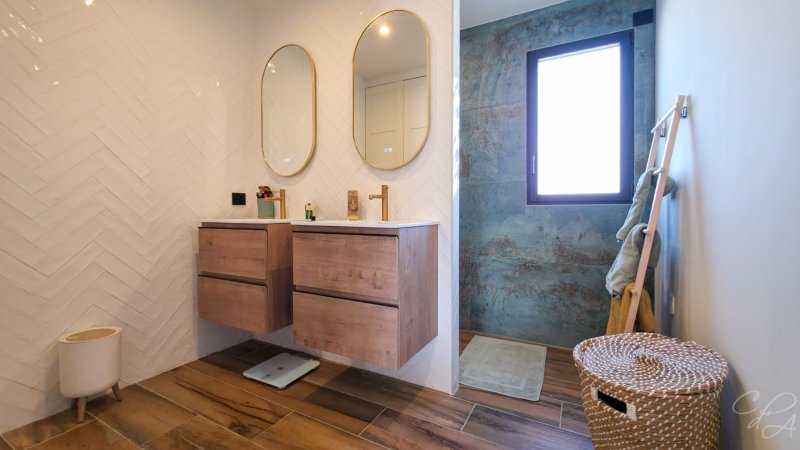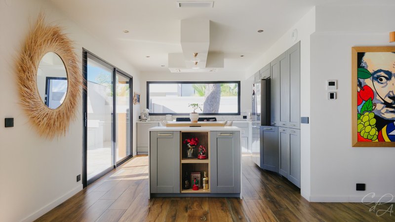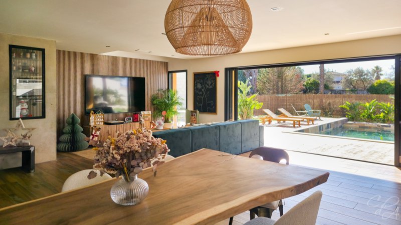 Assurément cette villa coche toutes les cases : parfaitement située sur la route des plages et plus précisément entre PERPIGNAN et CABESTANY, dans un quartier hyper résidentiel et ultra sécurisé, elle propose un agencement au top avec, en rez-de-chaussée, une pièce de vie de 81 m² que prolonge une vaste suite parentale et, à l'étage, deux chambres supplémentaires, pourvues l'une et l'autre d'une salle d'eau, un bureau suffisamment confortable pour devenir l'indispensable chambre à donner et une grande mezzanine, idéale pour composer la salle de jeu des enfants. Flanquée d'un garage de 35 m², elle offre un charmant extérieur ne nécessitant que très peu d'entretien, agrémenté d'une piscine exposée plein sud. Enfin et s'agissant des prestations, elles sont au rendez-vous et depuis la climatisation réversible gainable jusqu'aux menuiseries alu d'excellente facture, en passant par l'imposante baie vitrée à galandage, ici rien ne manque. A noter que ce petit bijou bénéficie de l'assurance Dommage Ouvrage et des Garanties Décennales des artisans. A voir sans tarder.