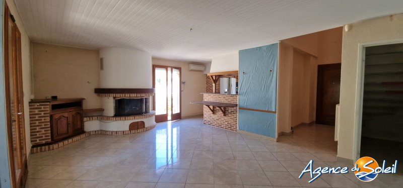 L'Agence du Soleil de Canet vous propose cette jolie villa 3 faces sans vis à vis sur un terrain de 345m² dans une impasse calme. Au rez-de-chaussée, vous découvrirez une belle pièce de vie lumineuse climatisée avec cheminée avec cuisine ouverte avec four à pain, une chambre, une salle d'eau avec wc, un grand cellier et deux vérandas. À l'étage, deux chambres dont une donnant sur une loggia et une salle de bain et wc indépendant. À l'extérieur, vous pourrez profiter d'un jardin clos et arboré avec forage. Idéale pour une résidence principale ou secondaire, à seulement quelques pas des commerces et des écoles, et à 15 minutes à vélo des plages. Visites avec Maïté Blondel au 06.20.59.19.63 AGENCE DU SOLEIL CANET 04.68.80.37.43 Honoraires à la charge du vendeur. Classe énergie C, Classe climat B Montant estimé des dépenses annuelles d'énergie pour un usage standard : entre 1822.00 et 2464.00 sur les années 2021, 2022 et 2023 (abonnements compris). Les informations sur les risques auxquels ce bien est exposé sont disponibles sur le site Géorisques : georisques.gouv.fr. . Retrouvez tous nos biens sur www.agencedusoleil.com