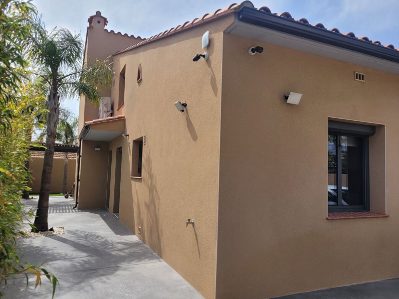 Canet Plage à proximité de la mer villa T5 de construction traditionnelle entièrement rénovée à neuf sur une parcelle de 3 faces. Elle est composée au rez-de-chaussée d'un séjour lumineux donnant sur un espace détente avec piscine-spa chauffée et pergolas, une cuisine équipée haut de gamme semi ouverte, une chambre parentale avec salle d'eau, un cellier . A l'étage 3 grandes chambres et une salle d'eau. Buanderie. Garage de 18 m² avec mezzanine. Rénovation soignée et de qualité. Climatisation gainée. A découvrir absolument. Coup coeur assuré.