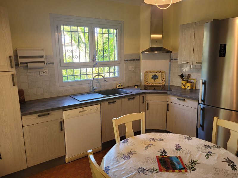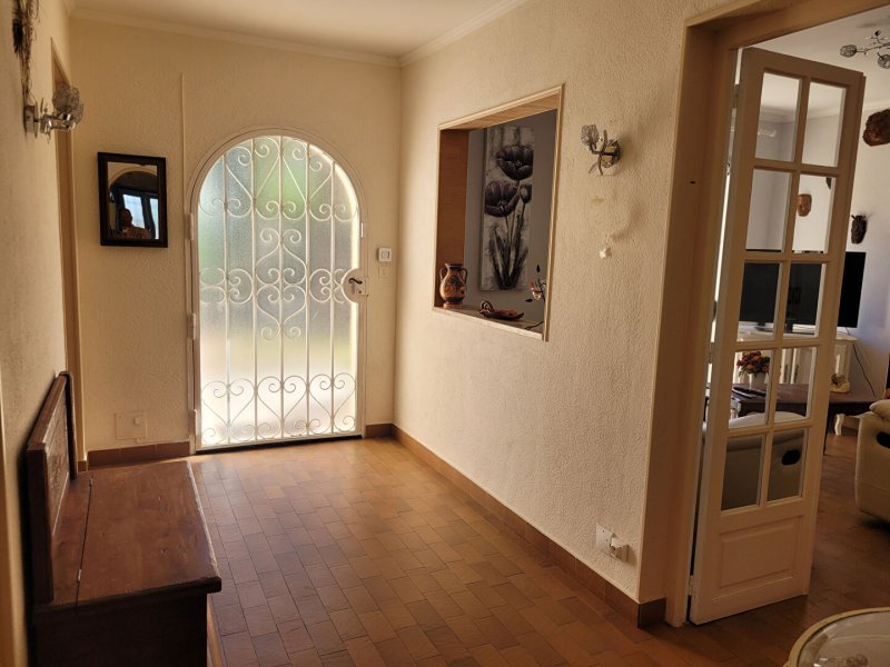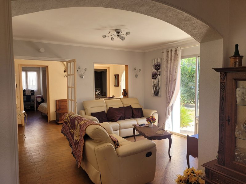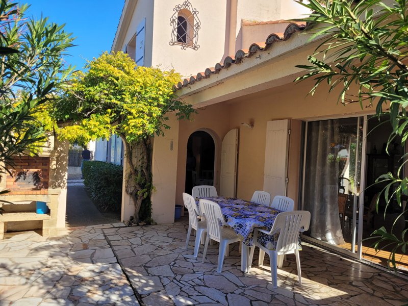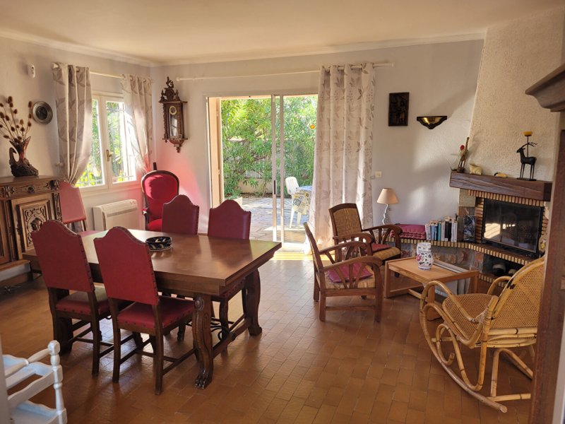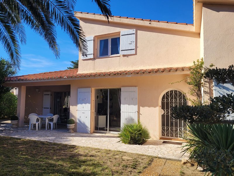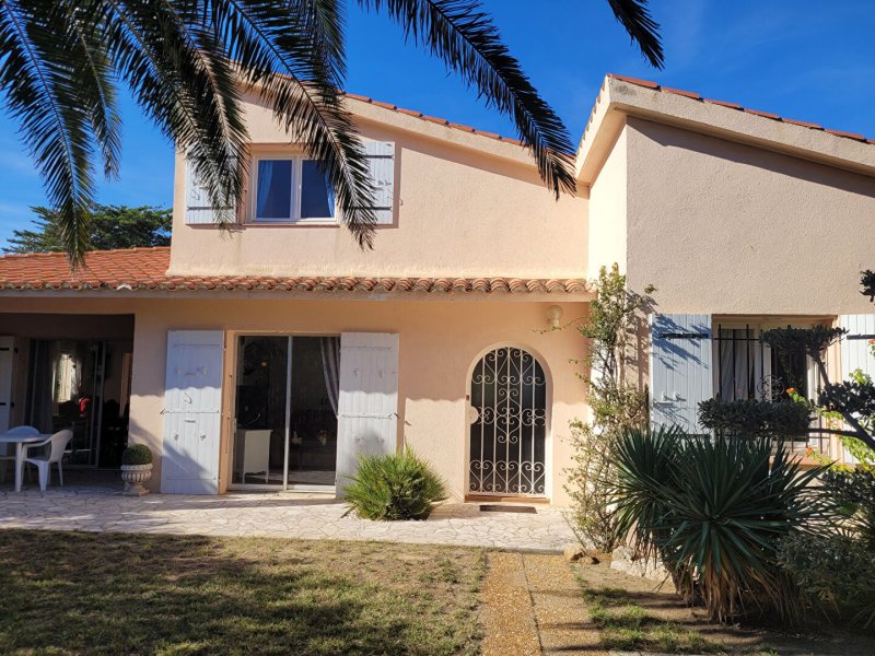 Canet Plage à 150 mètres de la mer très belle villa T5 sur terrain 4 faces de 445 m² . Composée au rez-de-chaussée d'un séjour et salle à manger lumineux de 40 m donnant sur deux terrasses sans vis à vis, cuisine indépendante équipée, 2 chambres, salle de bains avec douche et baignoire. A l'étage 2 chambres avec points d'eau. Grenier. Garage. Climatisation. Possibilité piscine. Rare. A découvrir.