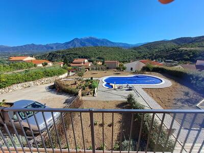 Sur les hauteurs de Catllar avec une vue splendide dégagée sur le massif du Canigou, une belle villa 4 faces de bonne construction (2004) de type T4 (3 chambres) d'une surface habitable de 124.20m² avec piscine (rénovée en 2024), agréable terrasse plein Sud, grand garage sur un terrain clos et arboré de 1430m².