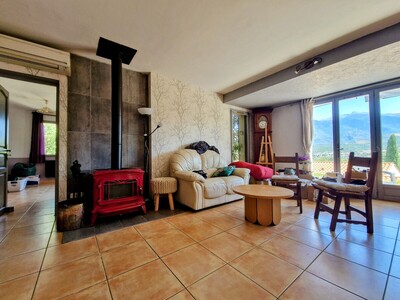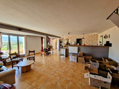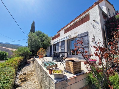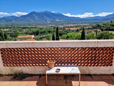 Surplombant les hauteurs de Catllar, une villa 4 faces sur rdc + 1 niveau avec une vue splendide sur le Canigou composée de 3 chambres dont 1 au rdc avec salle d'eau et wc.