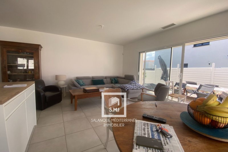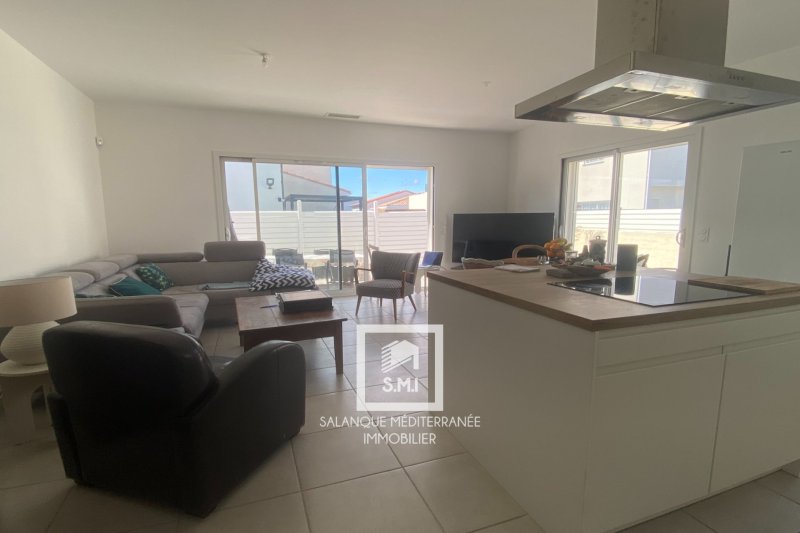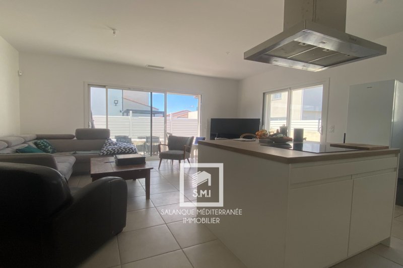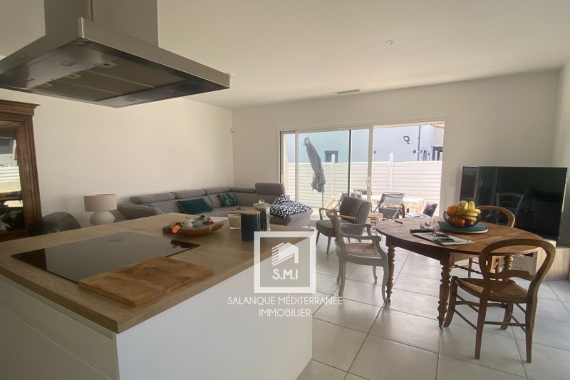 Maison 4 pièces, 3 faces et de plain-pied édifiée en 2023 (RE 2020) sur un terrain de 290 m² à vendre sur la commune de Claira. Elle se compose d'une entrée, d'un WC séparé, 3 chambres, un salon séjour avec cuisine ouverte équipée, d'une salle d'eau avec WC, d'une buanderie/cellier et d'un garage d'environ 15 m². L'extérieur offre une place de parking et une terrasse Le bien dispose de la climatisation réversible, du double vitrage, de volants roulants électriques, d'une porte de garage sectionnelle motorisée, d'un chauffe-eau thermodynamique, de l'alarme, et de la fibre optique