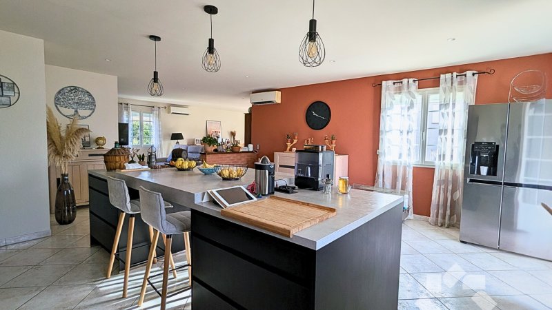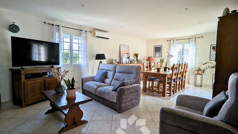 Située à proximité immédiate du centre-ville de la Commune de Claira (66), cette VILLA 4 chambres avec piscine dispose de très beaux volumes. En effet, comprenant 132 m2 habitables, elle propose également plus de 130 m2 de surfaces annexes (garage, remises, dépendances, buanderie, cuisine d'appoint...) sur un terrain de 991m2. Le 1er étage est composé d'un très grand et lumineux salon séjour cuisine, de 4 chambres, d'une salle d'eau, d'un WC, d'un porche d'entrée et d'une terrasse. Au RDC, plus de 130m2 de surfaces annexes, un grand garage pouvant accueillir jusqu'à 3 véhicules, une cuisine, une buanderie, atelier... et de grandes pièces de stockage. Elle propose de nombreux équipements de qualité, dont la climatisation réversible, des panneaux photovoltaïques, une belle cuisine équipée, de nombreux placards, menuiseries double vitrage, volets roulants électriques, conduit de cheminée, WMC hygro... A l'extérieur, elle dispose d'une piscine avec local technique, de plages et terrasses carrelées, d'un barbecue, ainsi que d'un beau terrain arboré. Achevée en 2001, de construction traditionnelle soignée avec cloisons, doublage et toiture maçonnées, elle atteint à travers la qualité de ses équipements et prestation la note énergétique B. Cette VILLA 4 faces, non mitoyenne, avec une exposition principale plein sud, située au coeur du village et à proximité immédiate des commerces et services, dispose d'une situation rare et de prestations exceptionnelles.