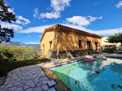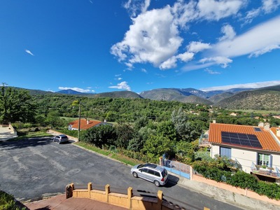 Sur les hauteurs de Codalet, avec une splendide vue sur les vallées, une villa 4 faces de bonne construction de type F4 ( 3 chambres dont une au rdc & 2 autres au 1er étage) avec balcons, terrasses, piscine et 2 grands garages (dont 1 en bord de route pour camping car).