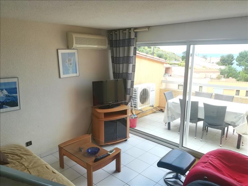 Dans résidence avec piscine: Villa en duplex d'environ 60 m² comprenant au rez de chaussée un séjour donnant sur terrasse vue mer, coin cuisine américaine, WC, à l'étage, 2 chambres, une salle d'eau avec WC. Possibilité d'acheter un garage en plus. A visiter sans tarder.