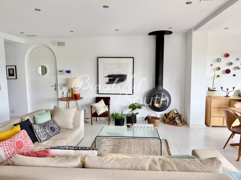 Son magnifique jardin paysager, ses terrasses baignées de soleil, sa piscine à débordement et son jacuzzi offrent un cadre de vie absolument unique, avec la Méditerranée en toile de fond.