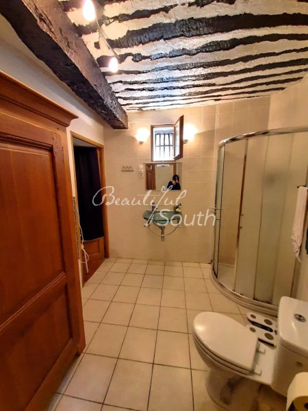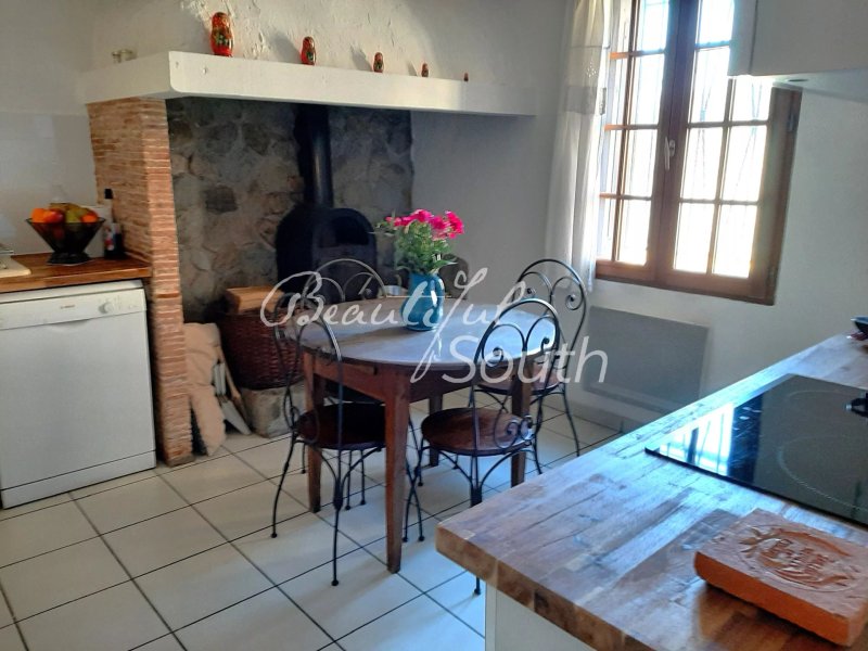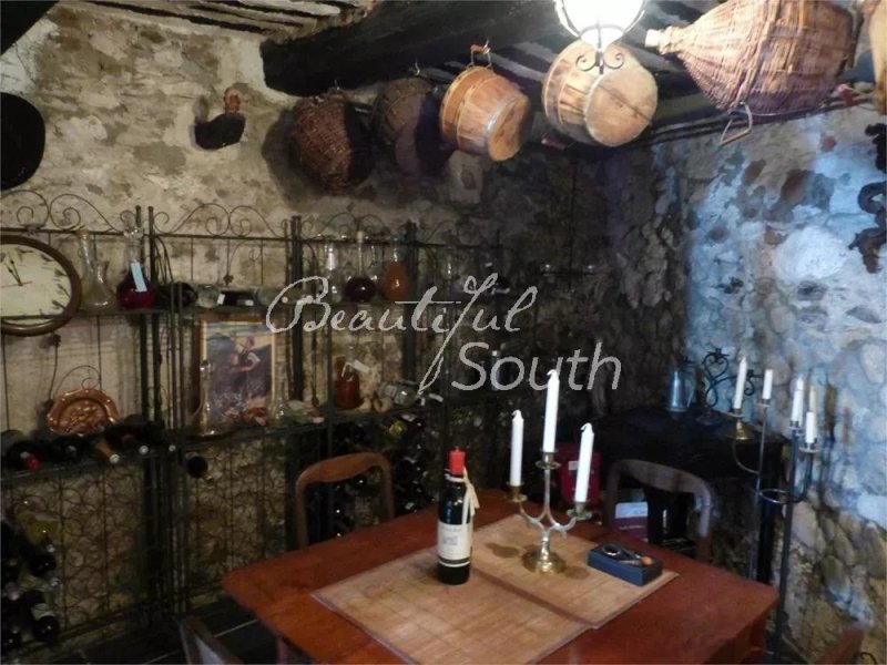 On y accède par une petite cour arborée de magnifiques glycines, de raisin et de bougainvillier, entièrement fermée et sans vis-à-vis. La maison est répartie sur 3 niveaux. Elle s’ouvre en rez-de-chaussée sur une véranda (cuisine d’été). Elle dispose sur ce même niveau d’une belle entrée, d’une salle d’eau, d’un grand cellier et d’une cuisine équipée avec poêle à bois.