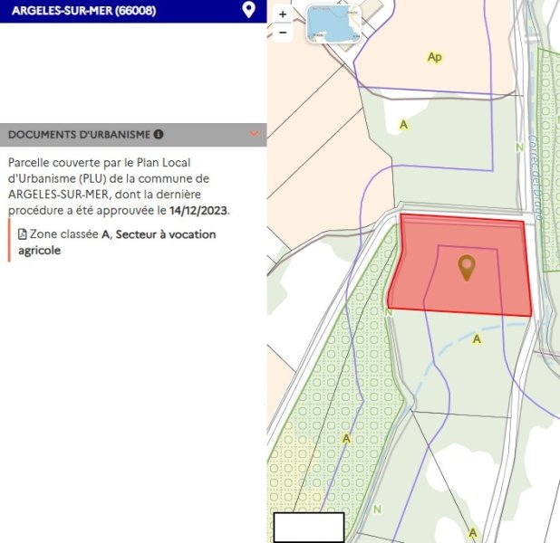 A la recherche d'un parcelle sur Argeles sur Mer, non loin du village? Terrain de 3800m2 plat arboré en zone Agricole Accessible en voiture car route a proximité immédiate