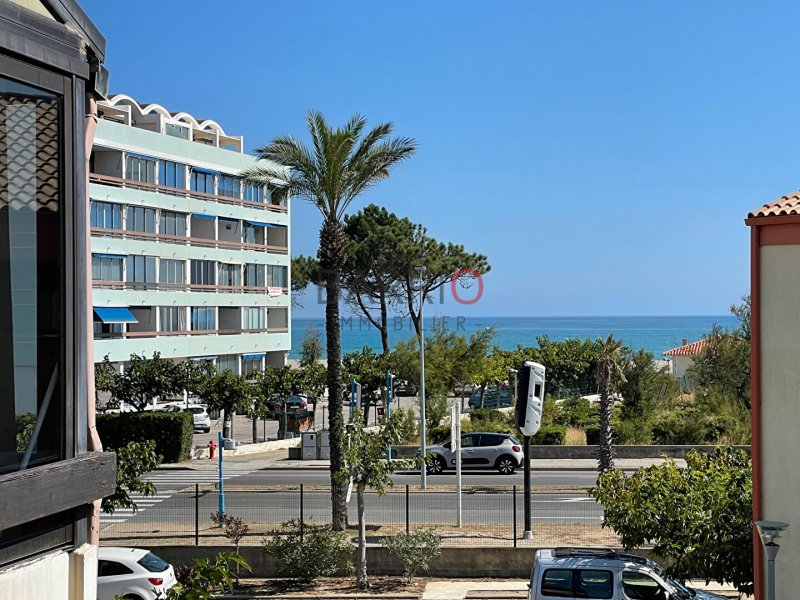 Canet en Roussillon en exclusivité superbe T3 entièrement rénové vue panoramique Mer et la place méditerranée en étage élevé. Séjour de 25 m² avec...