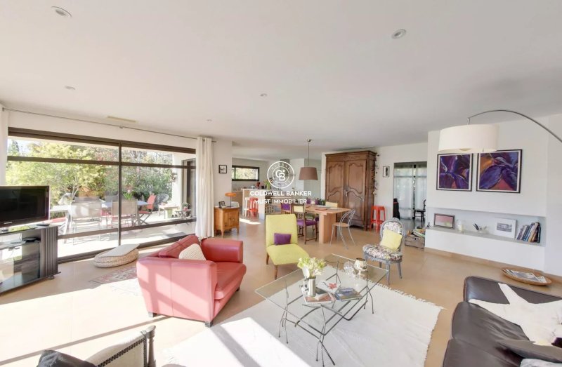 À seulement 14 minutes du centre-ville de Perpignan, cette élégante villa d'architecte réalisée avec de très beaux matériaux, bêton, acier corten,...